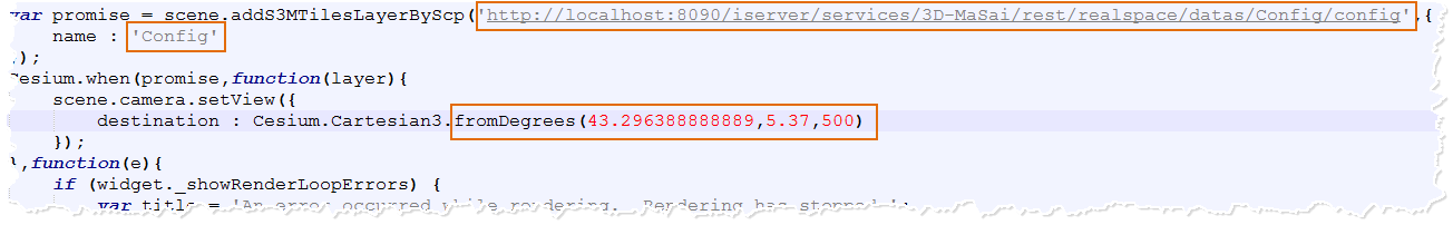 2 Enter the path of WebGL product package in %SuperMap iServer_HOME%/webapps, in the examples folder, open S3MTiles.html with text editor, and modify the following content.