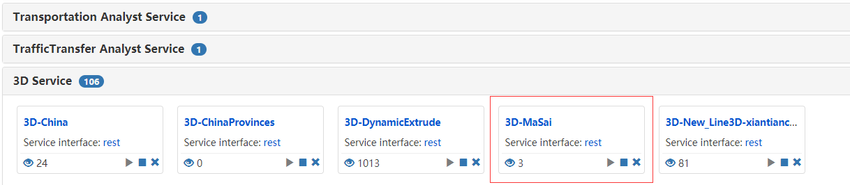 The service displays in the service list http://localhost:8090/iserver/services, as shown below.