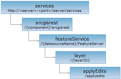 http://supermapiserver:8090/iserver/services/{datasourceName}/FeatureServer/{layerID}/applyedits.json