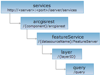 http://supermapiserver:8090/iserver/services/{component}/arcgisrest/{datasourceName}/FeatureServer/{layerID}/query.json